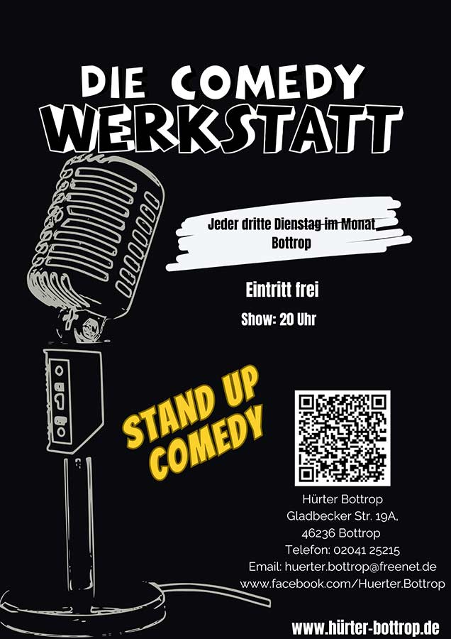 Die Comedy Werkstatt ist eine Neue offene Bühne in Bottrop. Hier können bekannte Comedians und Anfänger an ihren Texten und an ihren Gags arbeiten. Comedy ist ein Handwerk und deswegen freuen wir uns „Die Comedy Werkstatt“ eröffnen zu können.