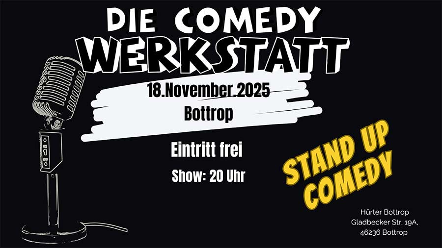 Die Comedy Werkstatt ist eine Neue offene Bühne in Bottrop. Hier können bekannte Comedians und Anfänger an ihren Texten und an ihren Gags arbeiten. Comedy ist ein Handwerk und deswegen freuen wir uns „Die Comedy Werkstatt“ eröffnen zu können.