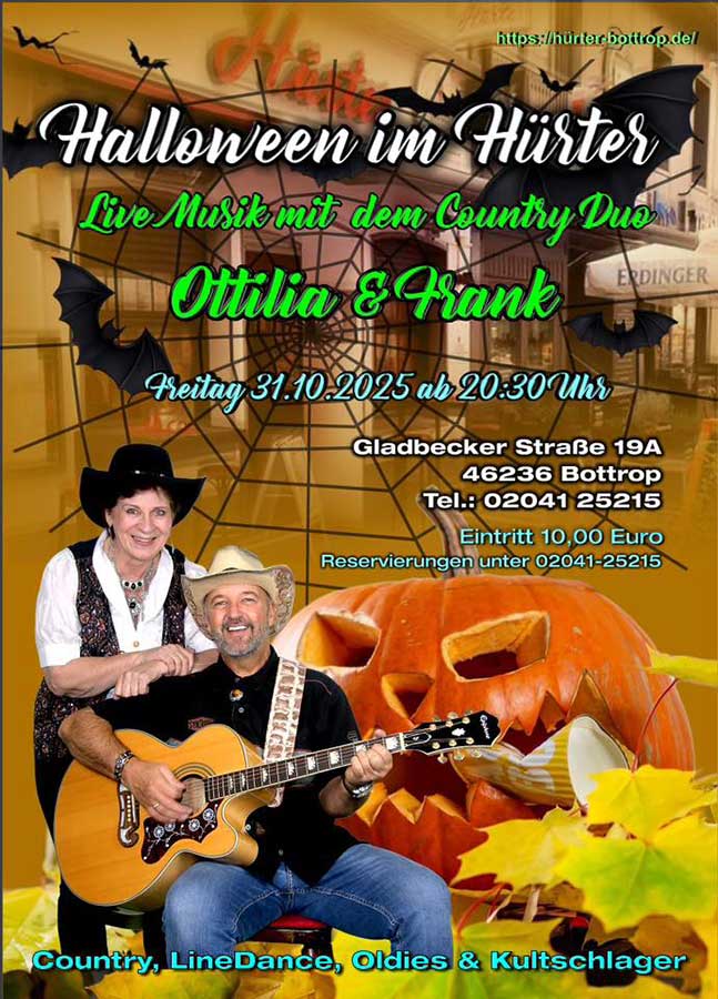 Let’s have a Party! Am 31. Oktober ab 20:30 Uhr heißt es im Hürter: Musik, Spaß und Stimmung pur – mit dem erfolgreichsten Country-Duo aus NRW, Ottilia & Frank.