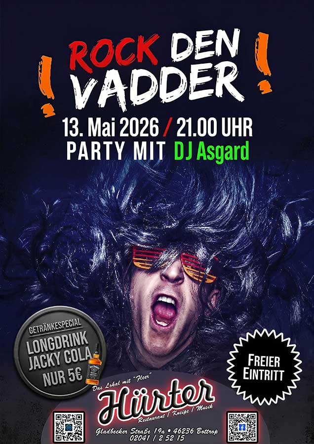 Party am 13. Mai 2026. Hürter rockt den Vadder! Ab 21 Uhr.