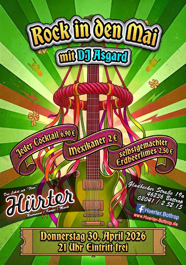 Harte Sounds & feine Drinks – Rock in den Mai@Hürter mit DJ ASGARD – Eintritt frei!